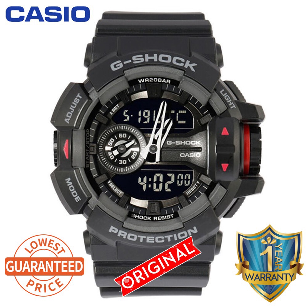 Casio ga 400 1bdr g shock erkek kol saati. Sepette 25 i̇ndirim 1 698 60 tl. Dayanıklı saatler için sürekli olarak yeni standartlar belirleyen saat markası g shock a analog dijital kombinasyonlu yeni ga 700 modeli eklendi. Casio ga 400 1bdr g shock erkek kol saati casio 34 indirim 1 509 00 tl 998 75 tl. Casio marka analog digital makine tipi mineral cam tipi 200 m su geçirmezlik oval kasa şekli özelliklerine sahip casio ga 400 9bdr erkek kol saati ile ilgili diğer detaylı bilgiler aşağıda yer almaktadır.