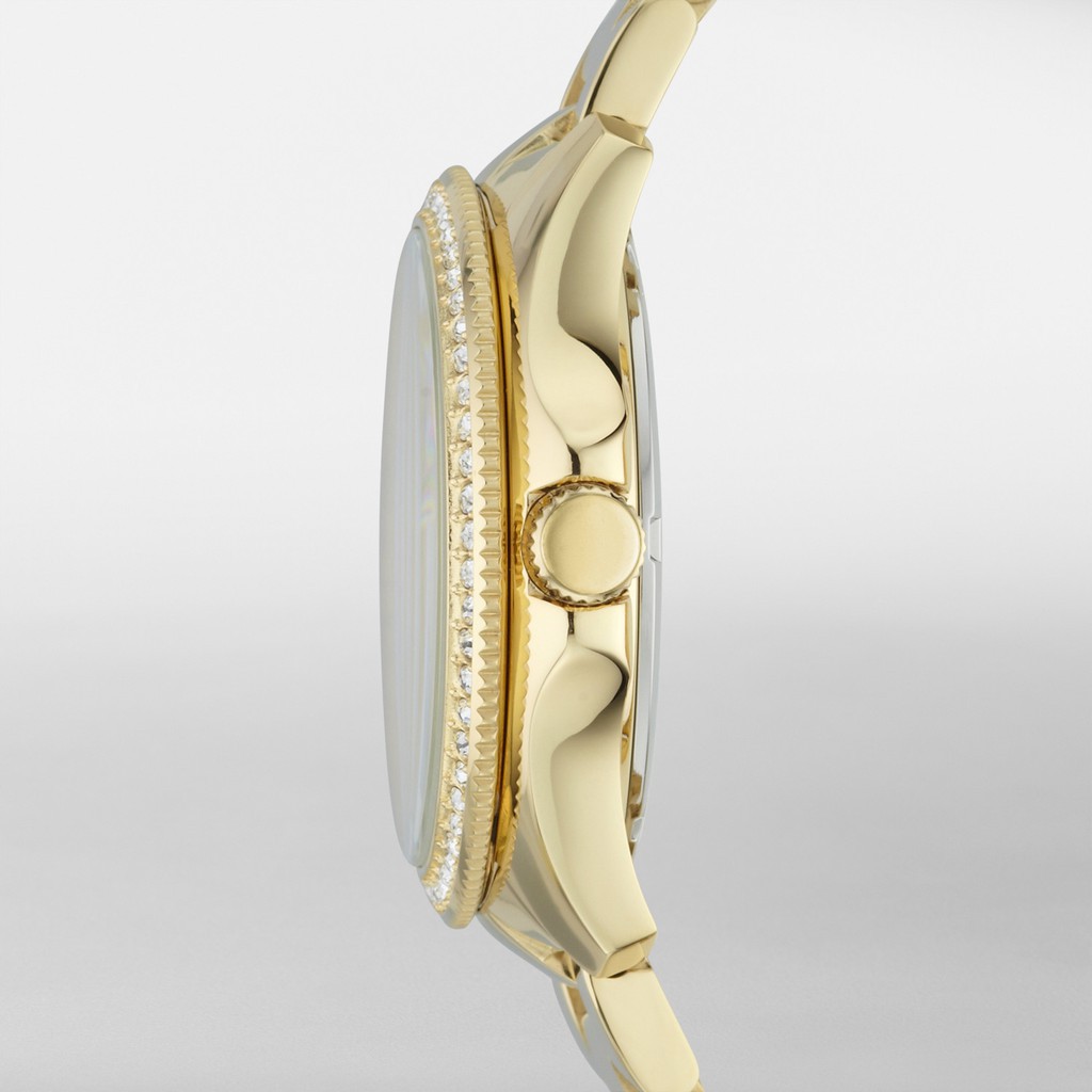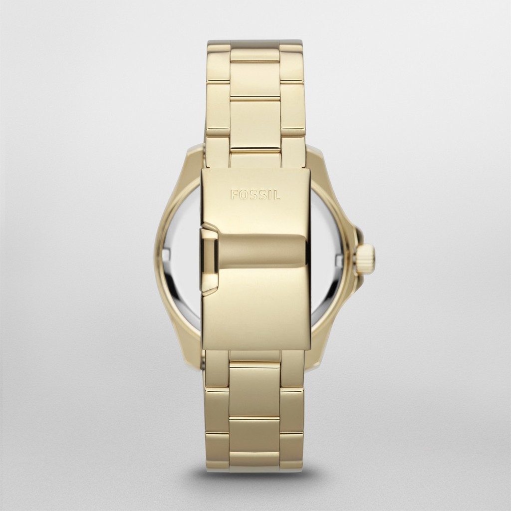 Fossil am4482 kol saati 40 mm kasa çapında mineral cam altın rengi paslanmaz çelik kasa altın rengi paslanmaz çelik kordon analog quartz takvimli makine 100 mt su geçirmezlik özelliği.